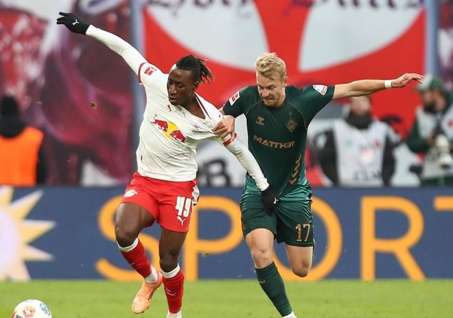 莱比锡排出433进攻阵型。扬-迪奥曼德、康拉德-哈德和努萨的进攻三叉戟联袂出击。阿桑-韦德拉奥果、赛瓦尔德和鲍姆加特纳搭档3中场。巴库、威利-奥尔班、卢克巴和劳姆4后卫首发出战。古拉西奇担任首发门将。莱比锡首发阵容总身价1.94亿欧元。云达不莱梅首发阵容总身价9450万欧元。
