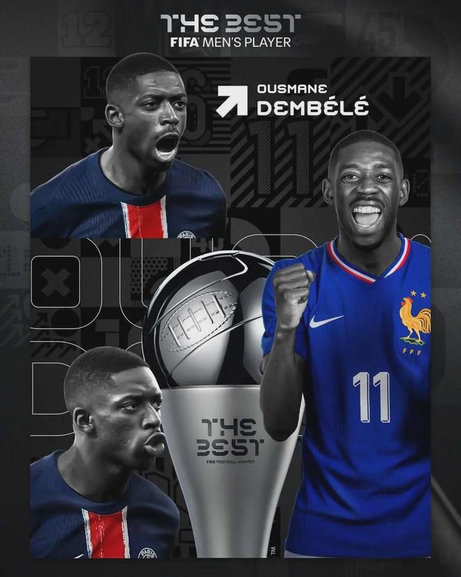 当FIFA主席因凡蒂诺念出“奥斯曼·登贝莱”的名字时,整个巴黎圣日耳曼的更衣室,乃至远在巴塞罗那和多特蒙德的老友们,都为之沸腾。这位28岁的法国前锋,正式加冕2025年FIFA年度最佳球员,成为后梅罗时代,首位站上世界之巅的90后球员。